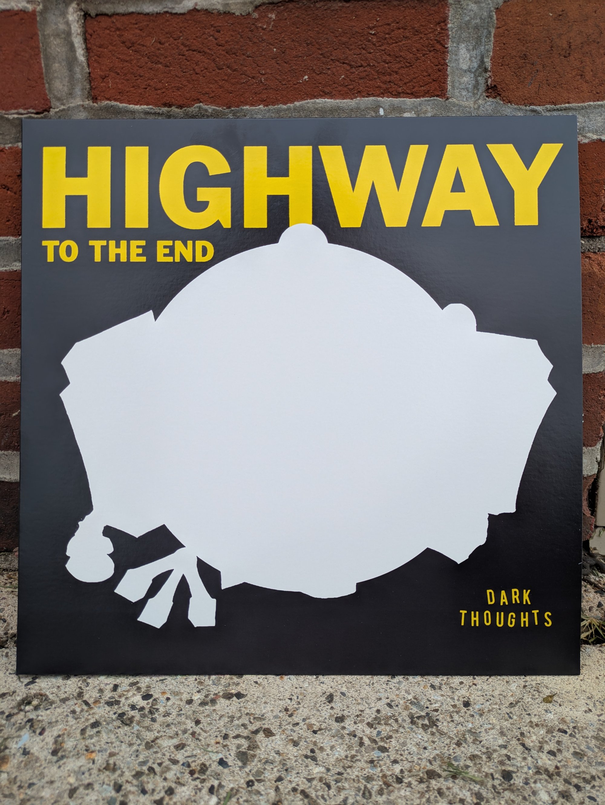 Dark Thoughts 4th LP "Highway To The End" is here! All USA copies are on black vinyl (always and forever), but there are 50 copies with screen printing overtop of the regular jacket. ***ONE LIMITED VERSION PER ORDER***